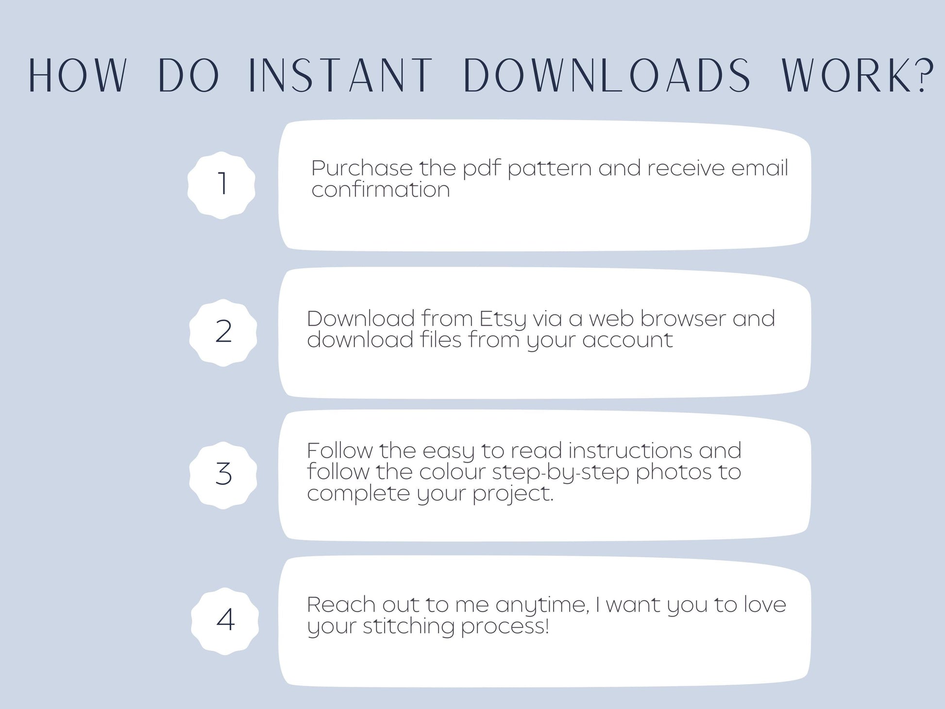 I will send your personalised pattern to you in 1-2 business days after purchase
