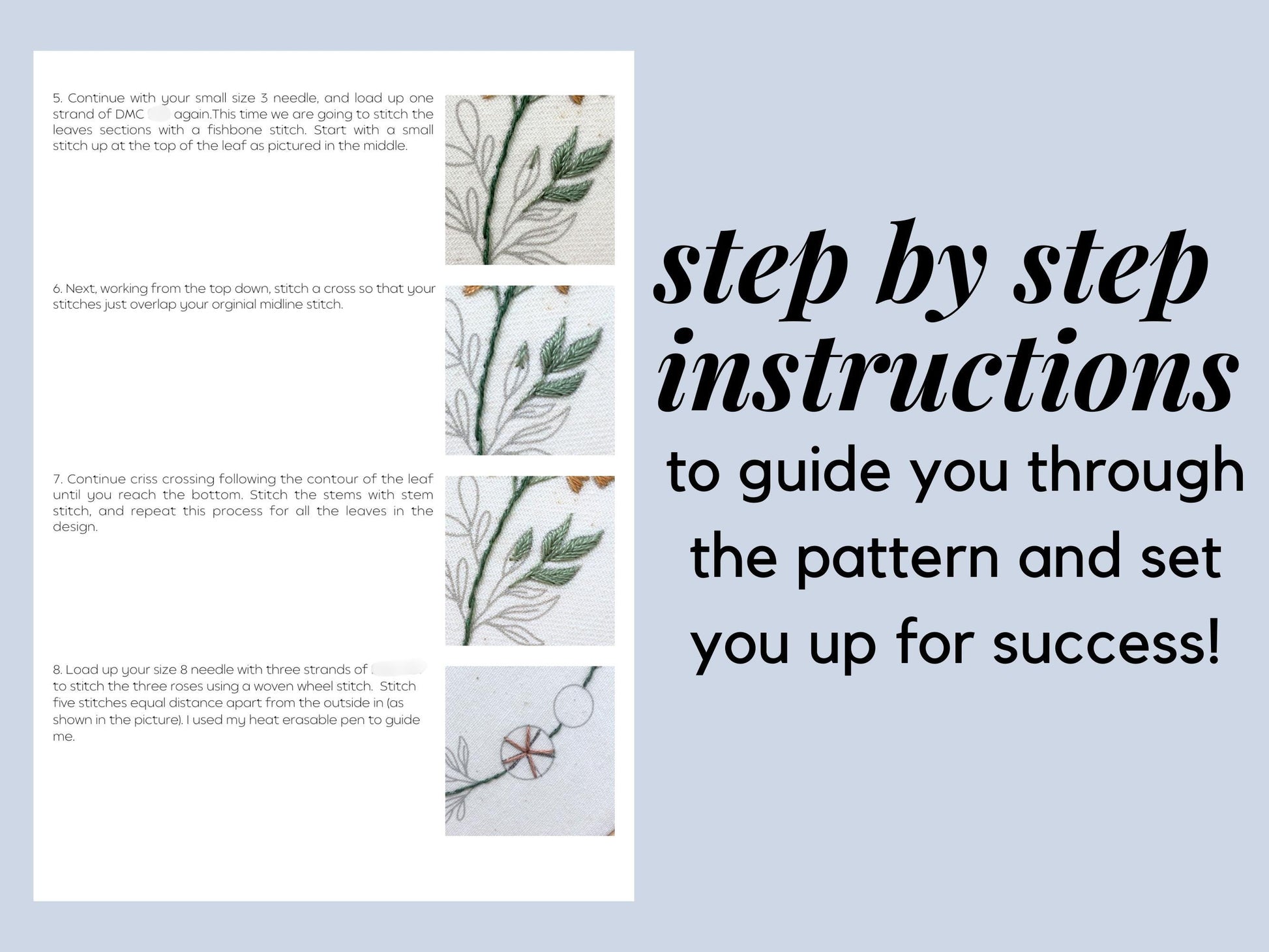✔ Step by step instructions for entire design, including stitch tips and techniques